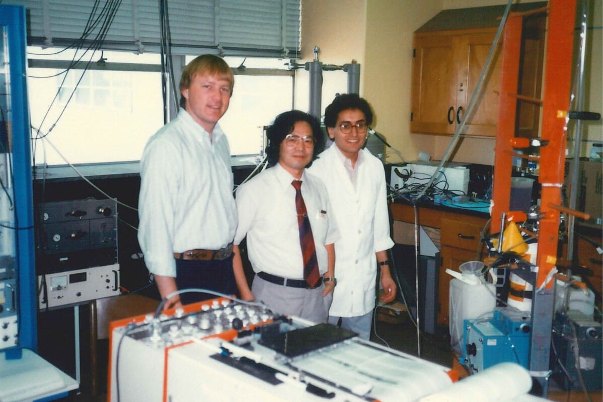 東京キャンサークリニックの創立者がカリフォルニア大学サンフランシスコ校時代の研究室仲間との写真。創立者紹介ページで使用している画像。