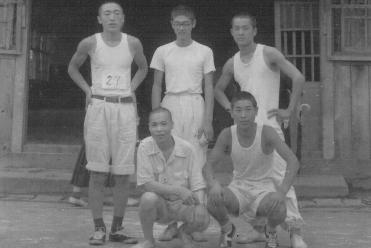 東京キャンサークリニックの創立者が高校時代の駅伝マラソンチームとの写真。創立者紹介ページで使用している画像。